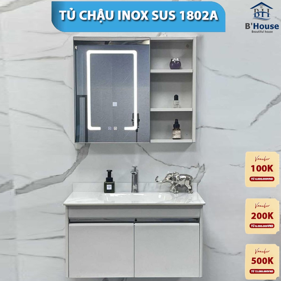 Bộ Tủ Gương Phòng Tắm, Tủ Lavabo Đẹp, Tủ Lavabo Phòng Tắm, Tủ Chậu Inox SUS 1802A